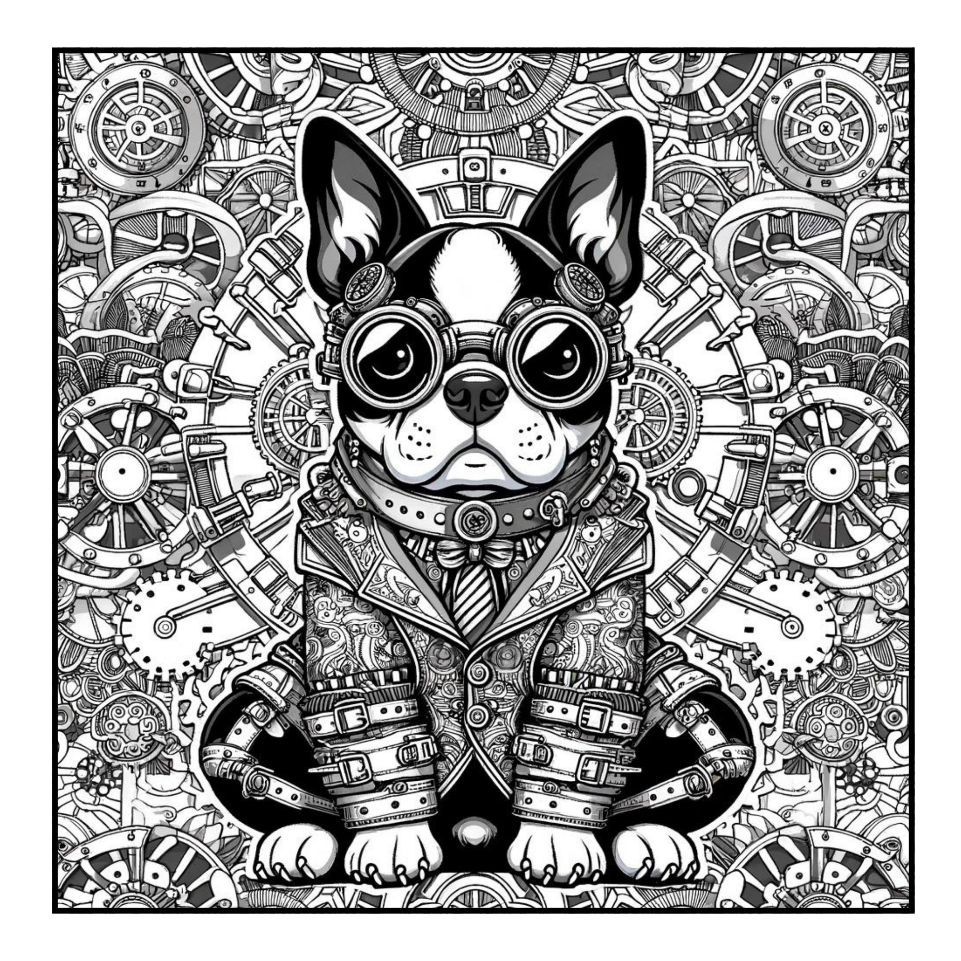 Step into a world where whimsy meets wonder with our "Steampunk Boston Terrier Coloring Book"! Dive into 50 captivating designs featuring adorable Boston Terriers decked out in gears, goggles, and Victorian flair, set against fantastical steampunk backdrops.